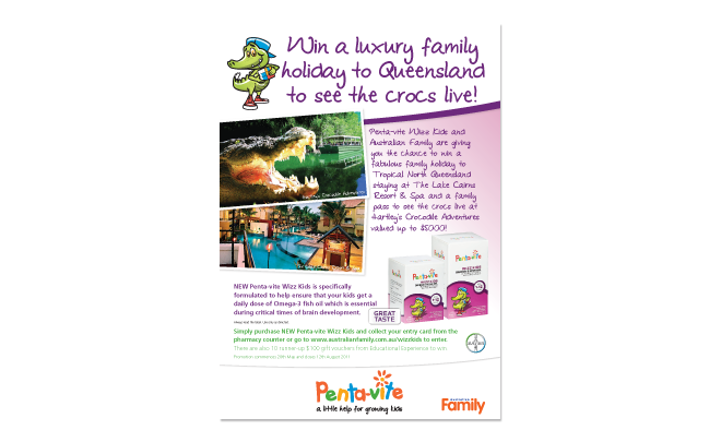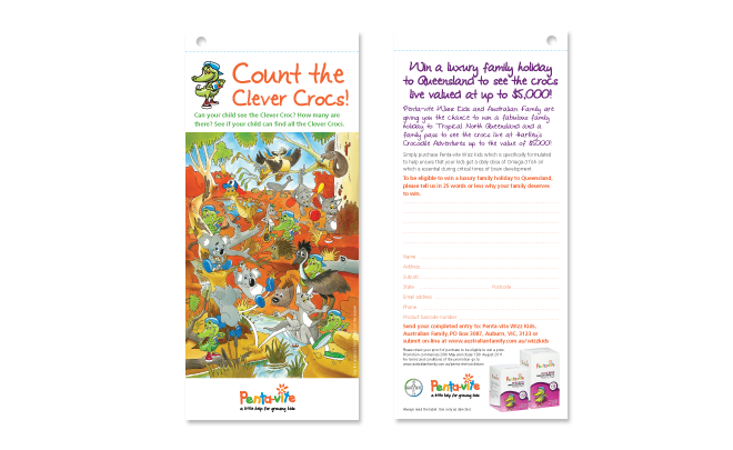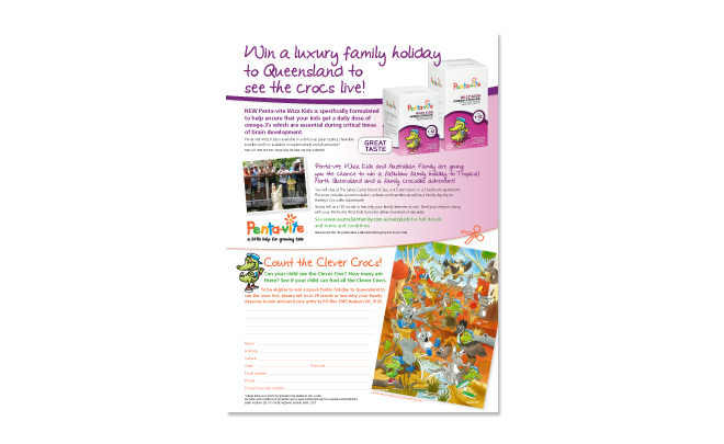 We've been involved in a series of promotions for Pentavite. We developed a style that is coordinated across a range of items.