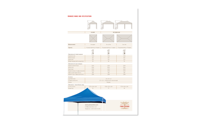 Pana Sombra sells and hires marquees and umbrellas that can be custom printed. Developed for the Panama market, the identity symbolises a palm tree as it casts its shadow.