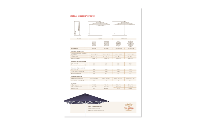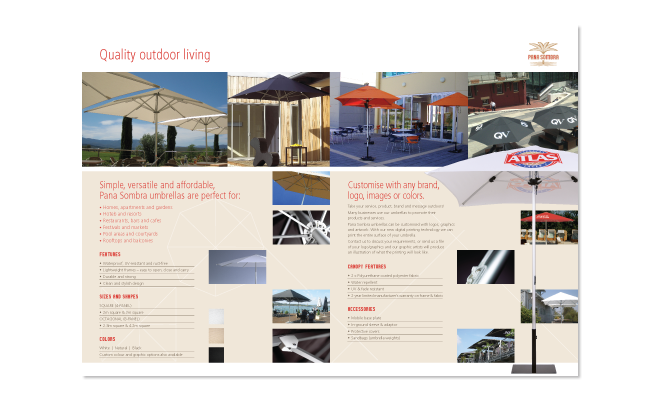 The brochures designed for Pana Sombra aim to provide a balance between showcasing their products and providing detailed specifications in a clear and concise form.